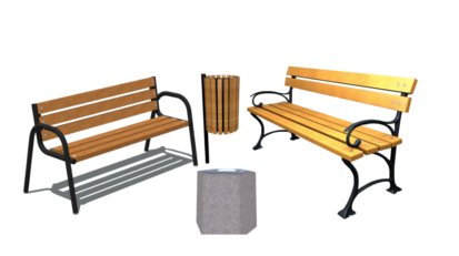- elementy małej architektury (ławki, kosze na odpady itp.).