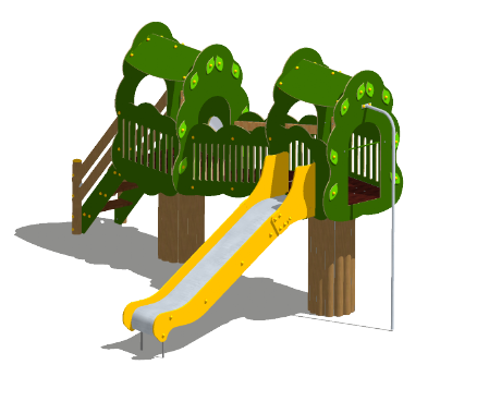 - Wersja: Stelaż wieży stalowy, okrąglak impregnowany ciśnieniowo zamiennie z deską cztero-stronnie struganą, suszoną próżniowo i impregnowaną lakierobejcą, sklejka melaminowana zamiennie z płytą HDPE